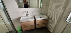 Wie schön unser Flur und die Toiletten unten und oben sind renoviert und strahlen in neuem Design. Und das Beste: jetzt gibt es eine Tür vom Wohnzimmer in den Wintergarten. Richtig toll.